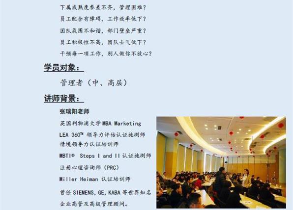 2016年4月15、16号领导力提升进阶项目第一阶,9月2、3号第二阶,11月11、12号第三阶公开课顺利开展。来自基准方中、硅宝科技、新华发行、立邦漆、倍特厨柜等公司的学员课后纷纷表示:1.对管理有了系统性的认识,掌握...