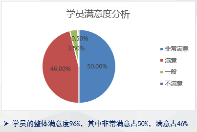 整个课程结束后,学员收获满满,整体满意度高达96%,其中非常满意占50%。